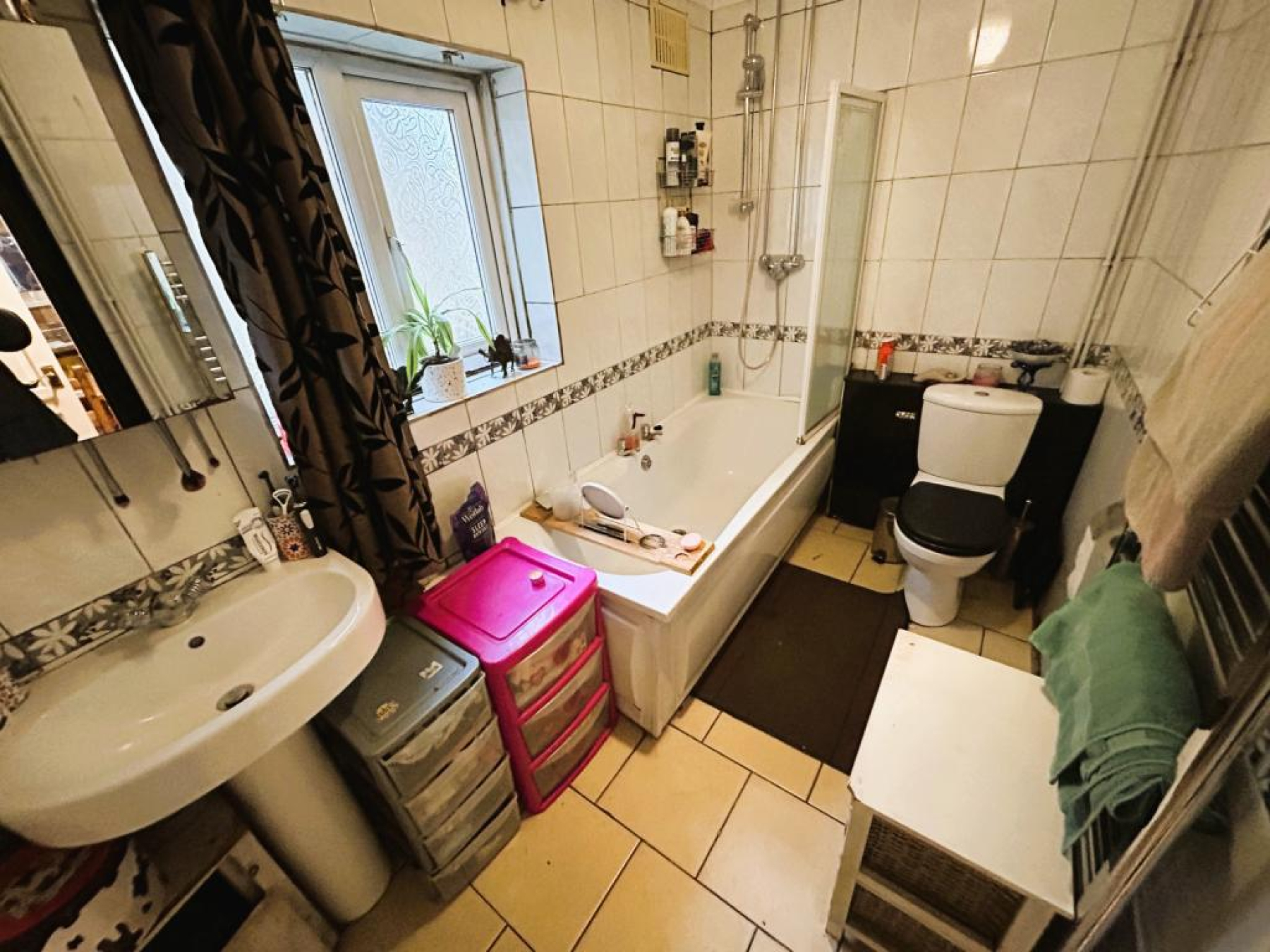 Fitted with a three piece suite comprising of a low level WC, wash hand basin with pedestal, panelled bath with overhead mains shower, floor to ceiling tiles, heated towel rail, ceiling light with coving and uPVC frosted window to side aspect.