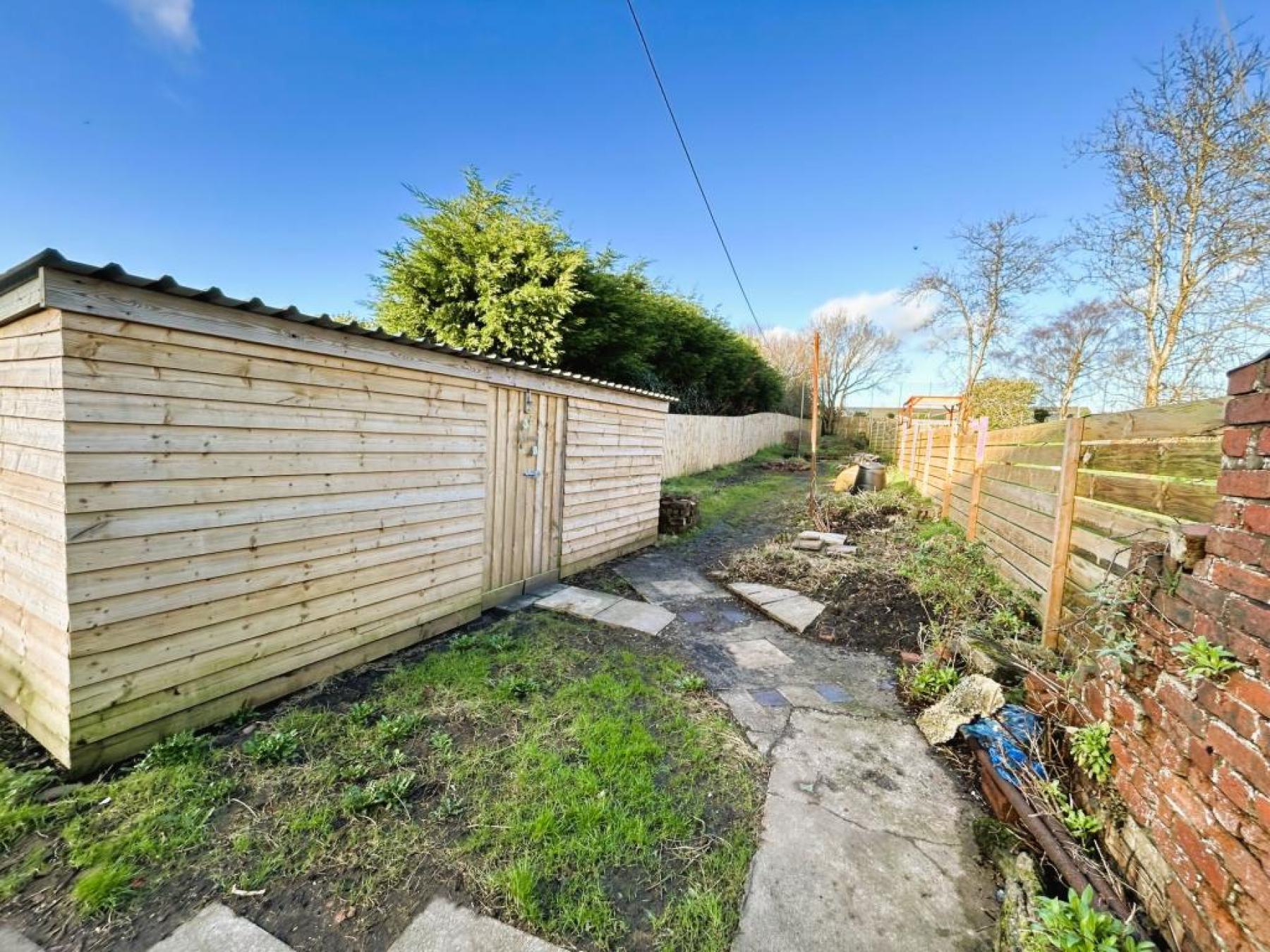 To the rear of the property is large mature garden laid mainly to lawn with patio seating area, plumbed for hot tub, large wooden storage shed and wooden fence borders.
