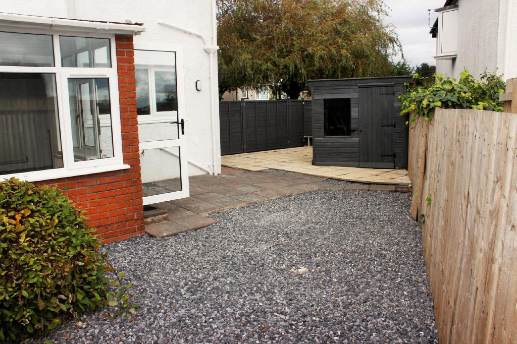 Fitted with modern wall and base units with complimentary work preparation surfaces over incorporating black stainless steel four ring gas hob with fan assisted oven and overhead extractor canopy. Stainless steel sink with drainer, integrated fridge and freezer plumbed for washing machine and integrated dishwasher. Wood laminate flooring, tiled splash back, smooth ceiling with spotlights. uPVC double glazed window to rear aspect, space for table and chairs. Built in larder cupboard with lighting and power.