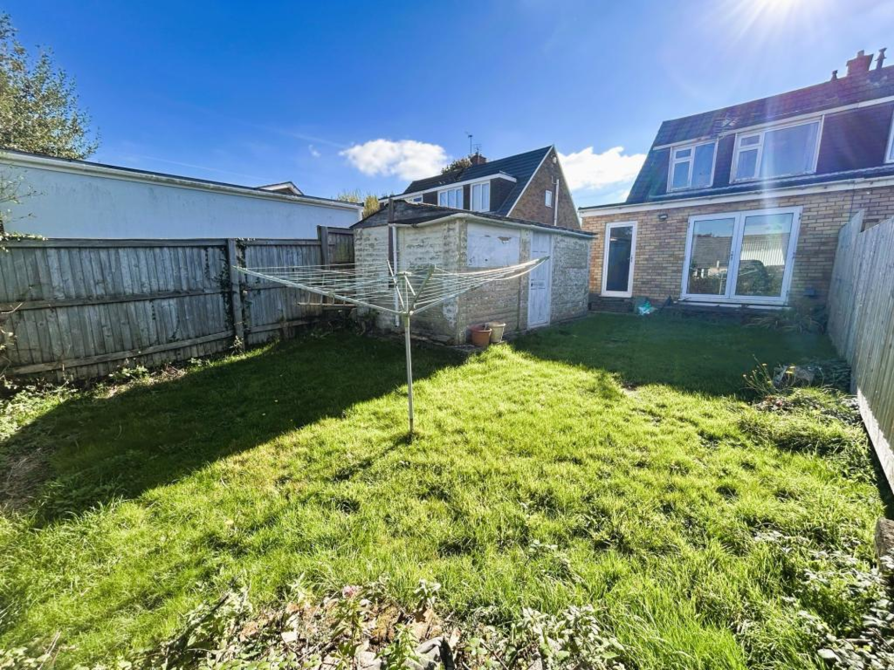 An enclosed rear garden, laid mainly to lawn and a large garage with power and lighting.