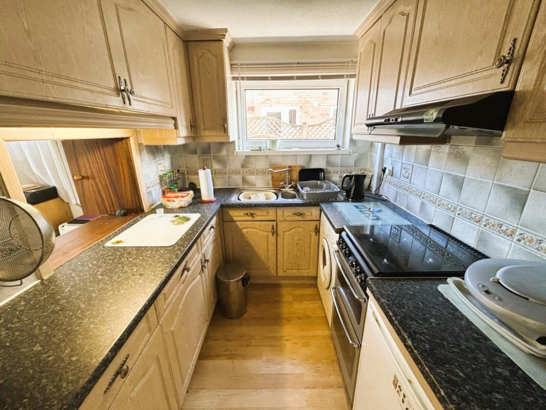 Fitted with a range of wall & base units with complimentary work preparation surfaces over, incorporating a stainless steel sink with drainer, space for free standing cooker, plumbed for washing machine, space for under counter fridge and freezer, tiled splash back, serving hatch, ceiling light and uPVC double glazed window to side aspect.