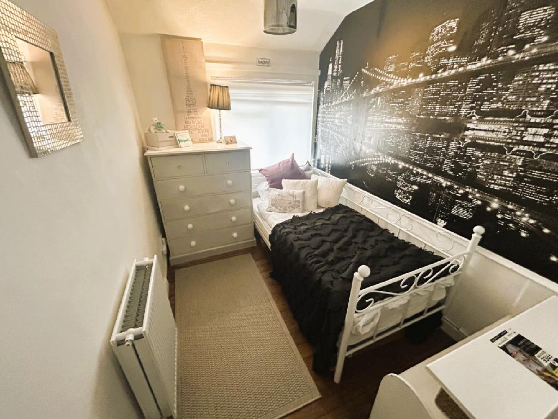 uPVC double glazed window to front aspect, original wooden slat flooring, fitted wardrobe, radiator and ceiling light.