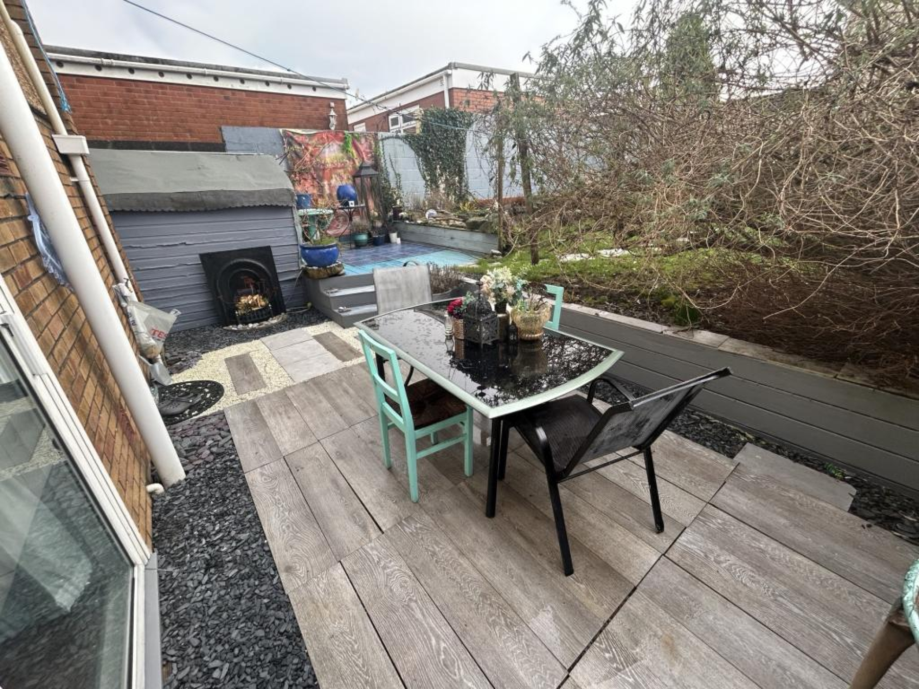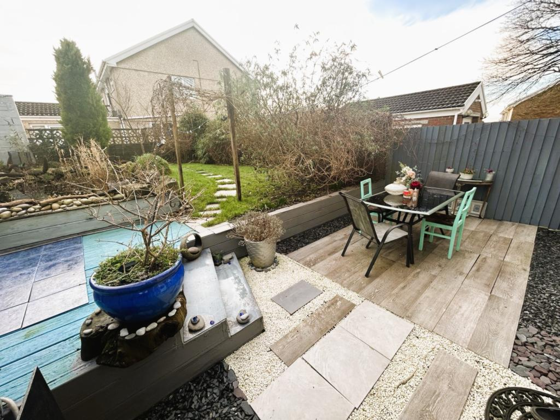 To the rear of the property is a delightful well maintained garden, laid to lawn with seating area, mature shrubs and wooden fence borders.