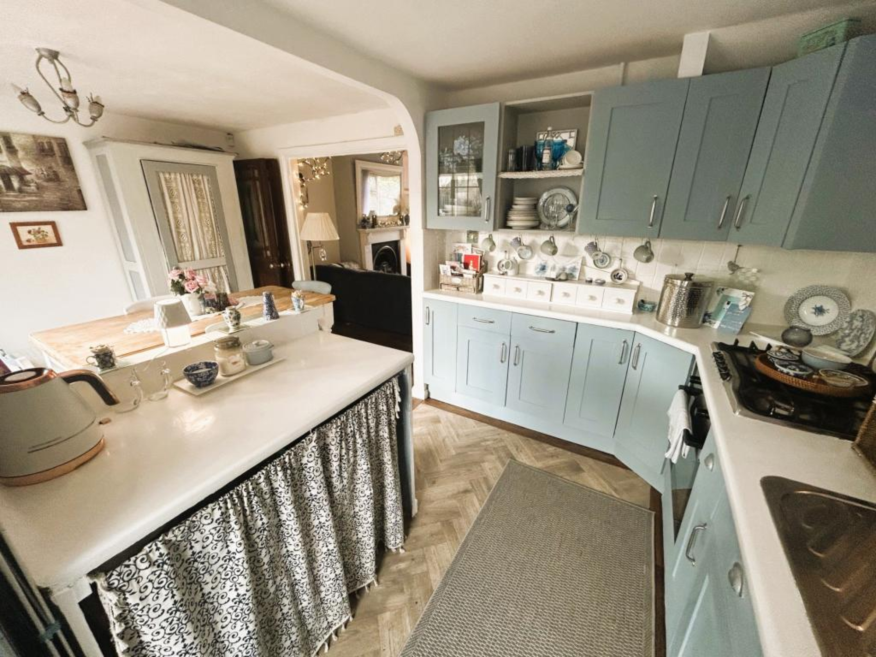 Fitted with a wide range of wall & base units with complimentary work preparation surfaces over, incorporating a stainless sink with drainer, inset five ring gas hob with under-counter fan assisted oven, plumbed for washing machine and dishwasher, tiled splash back, breakfast bar, uPVC double glazed window to side aspect and further uPVC external door opening on to rear garden.