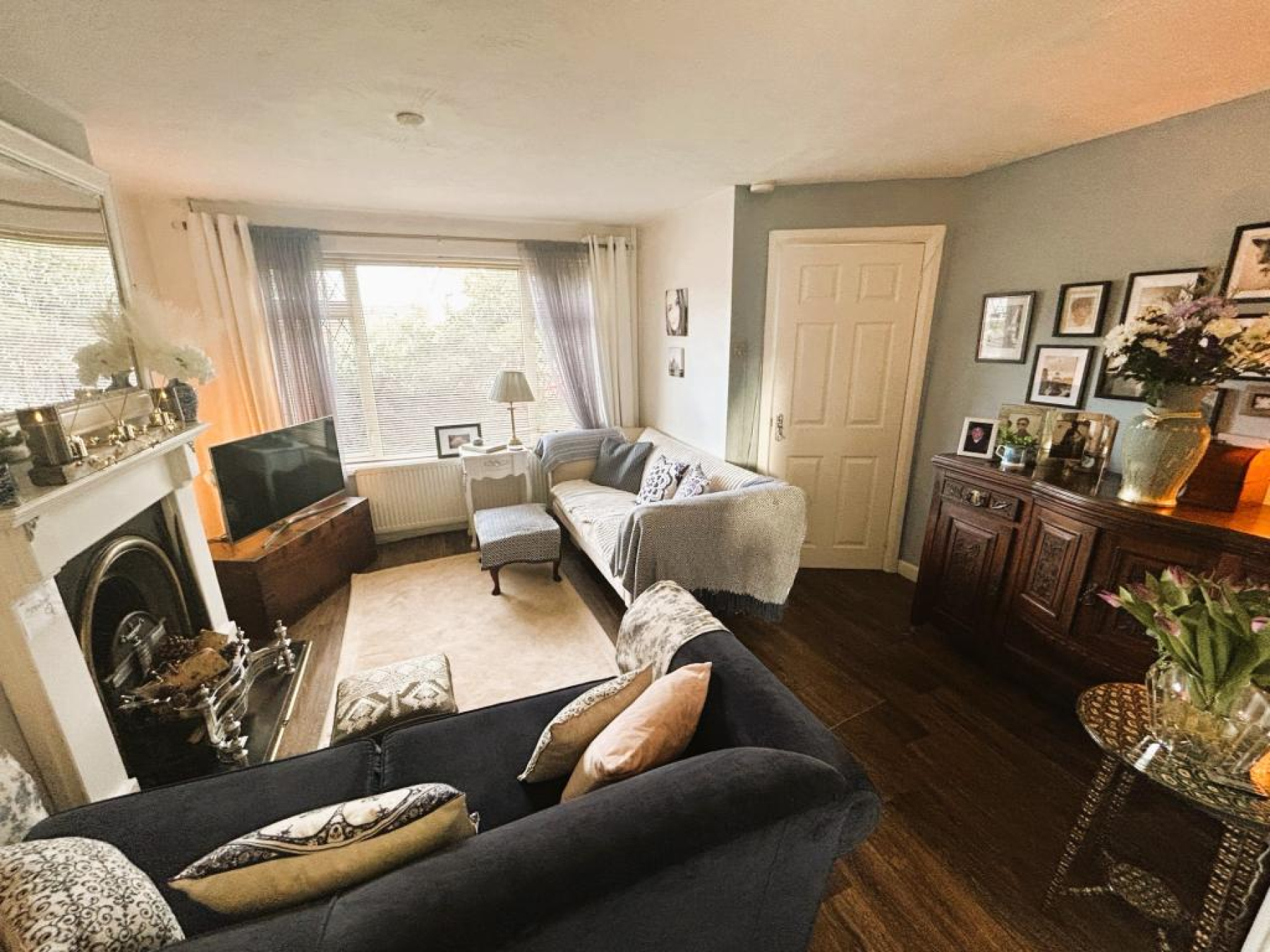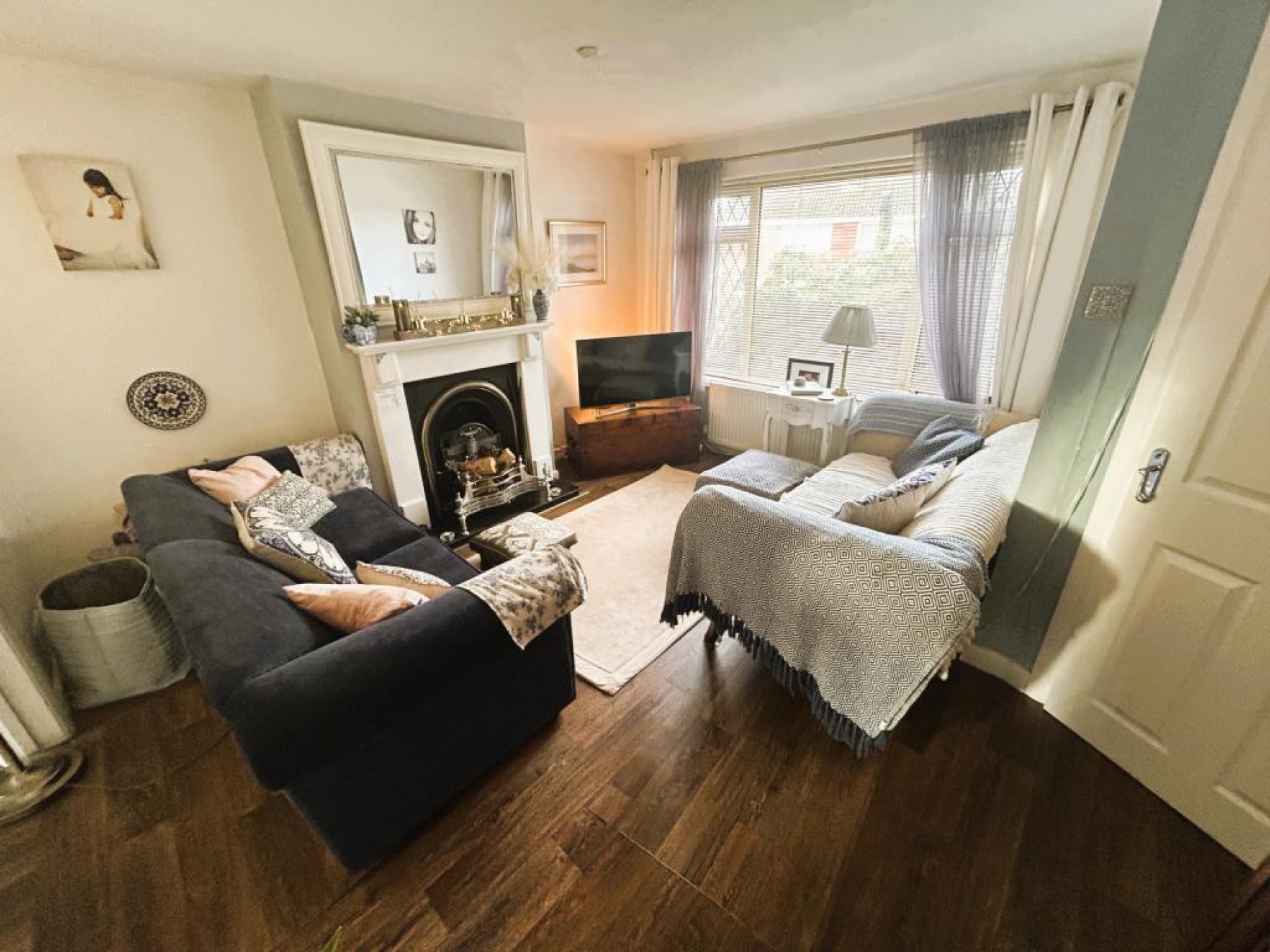 uPVC double glazed window to front aspect, wood laminate flooring, radiator and feature cast iron fire place with surround.