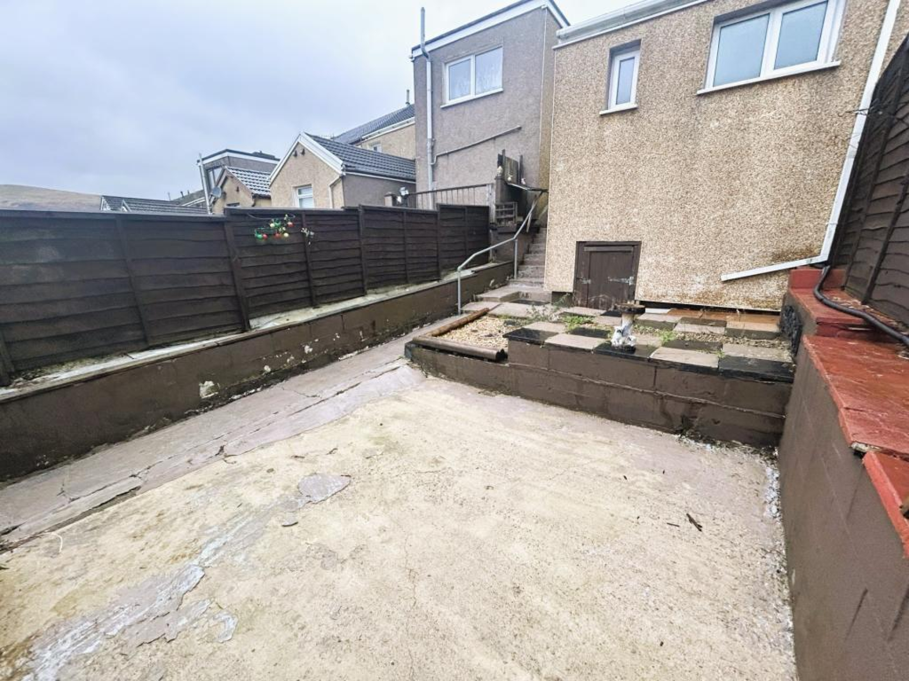 To the rear of the property is an enclosed, low maintenance rear garden with patio seating area leading to a large work shop with power and lighting, accessed via rear lane.