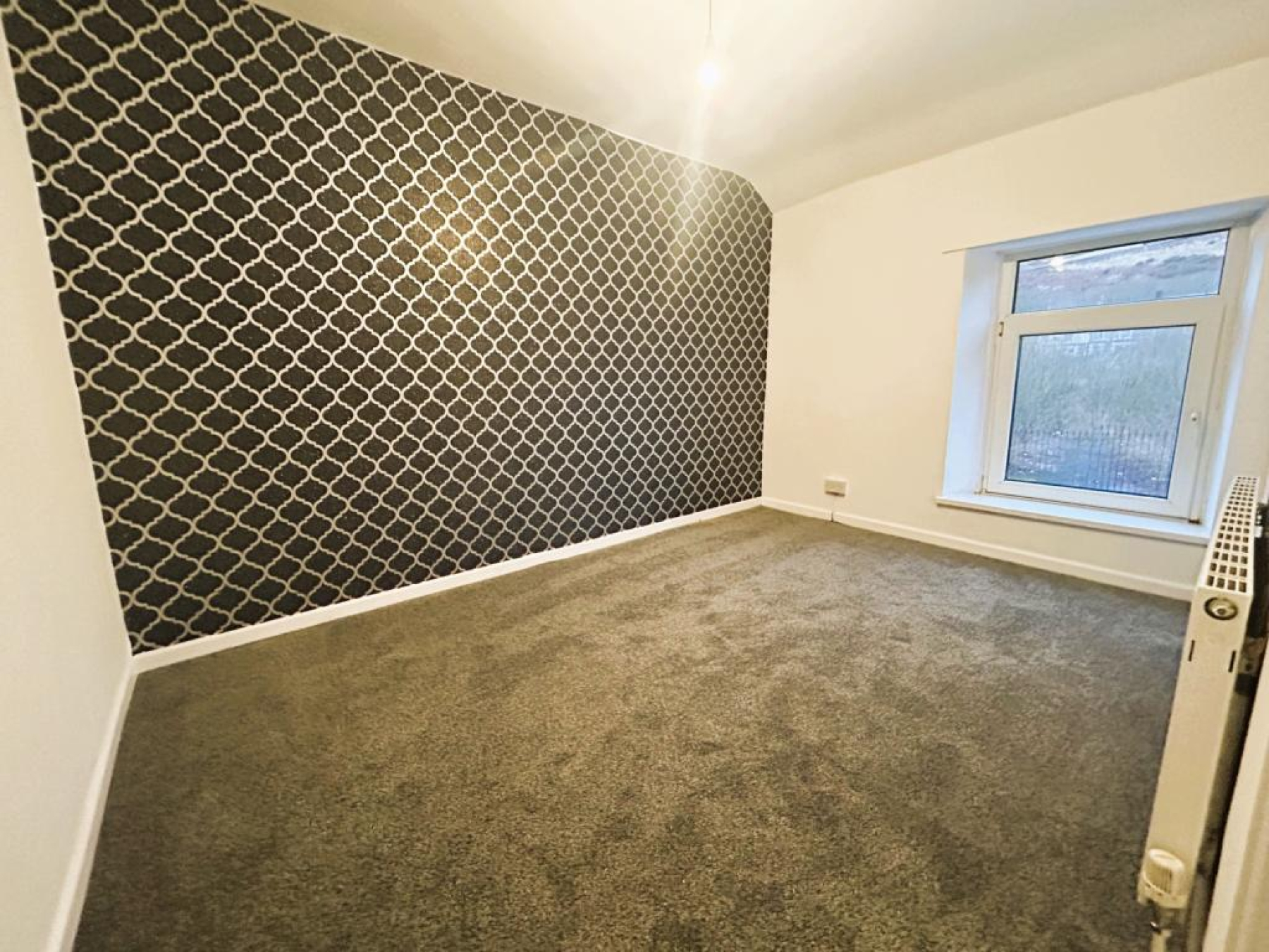 uPVC double glazed window to front aspect, fitted carpet, two radiators, smooth ceiling with two ceiling lights and further uPVC double glazed window to rear aspect.