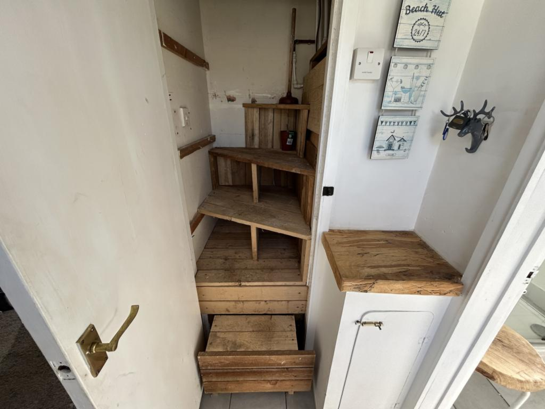 Enter via uPVC external door, ceramic tilled floor, storage cupboard with, staircase leading to attic.